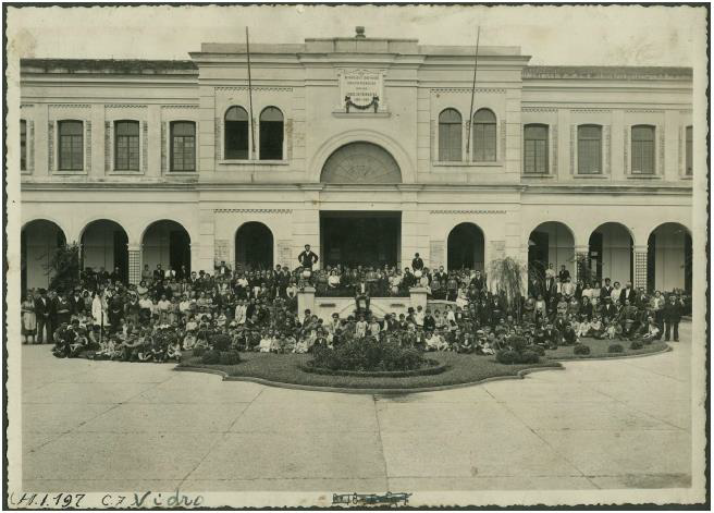 Figura 1. [IMIGRANTES posando em frente ao edifício principal].