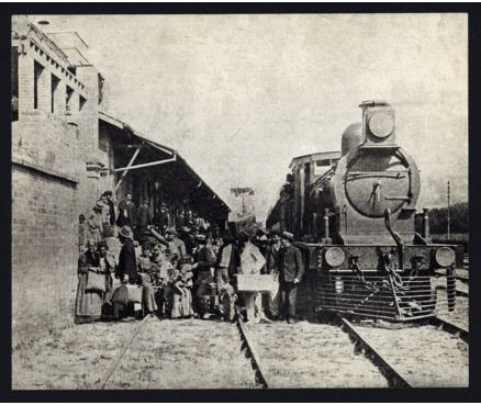 Figura 2. [IMIGRANTES desembarcando na estação da Hospedaria de Imigrantes]. São Paulo-SP, [19–?]. Ampliação, pb. Ref: Acervo APESP, Núcleo de Acervo Iconográfico, Fundo Secretaria da Promoção Social (SEPROS).