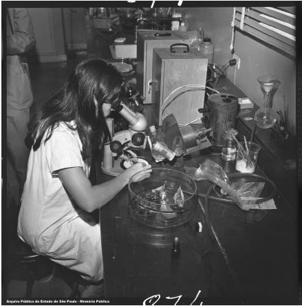 Figura 5. [Instítuto Biológico – Pesquisas sobre a ferrugem cafeeira] São Paulo-SP, 1972. Créditos: Avelino Ginjo (Sec. Gov./SP). Fundo Secretaria de Governo, Secretaria Especial de Comunicação, Série Fotografias (negativos) BR_APESP_SEGOV_ICO_NEG_3851_14